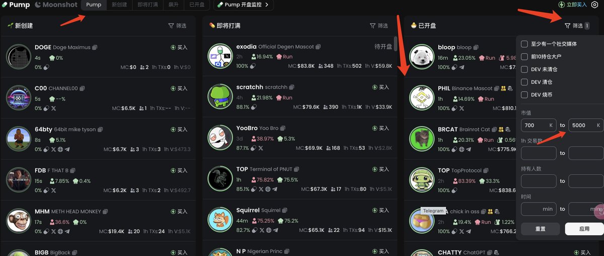 前幾天看到有個博主說人家在 Solana 上篩選 70-500 萬市值的代幣,每天都過幾遍,專門找有大角度的。