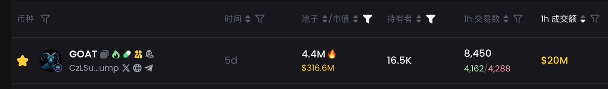 $GOAT 代幣鏈上一小時成交量高達 20M(2000 萬美元),這個成交量數據非常驚人。