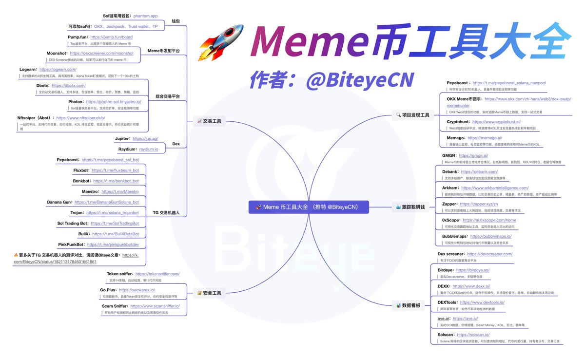 Biteye整理了一些玩Meme的實用工具,涵蓋鏈上監控和交易。